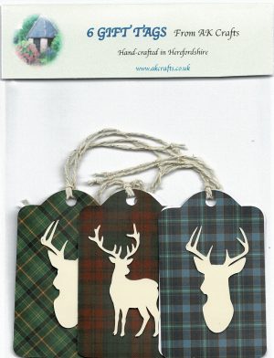 Christmas Gift Tag – Cream Deer / Tartan (pack of 6)